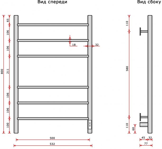 Полотенцесушитель Ростела Свирель D 50x80/9 водяной, боковое 1", хром