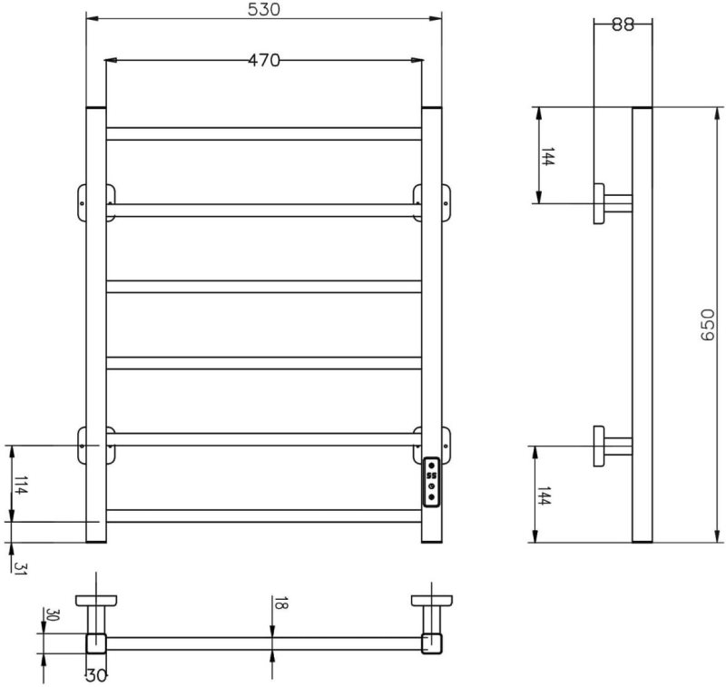 Полотенцесушитель Roxen Square 53x65 электрический, черный. Все характеристики |