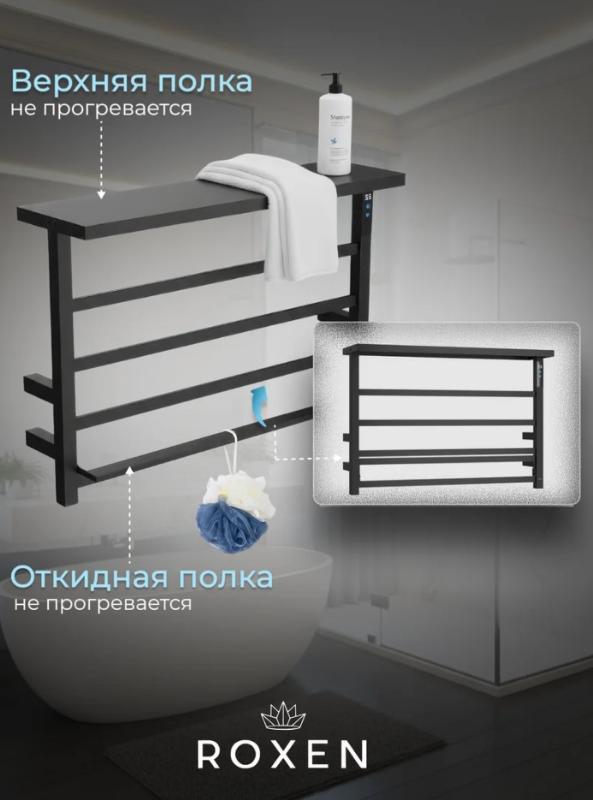 Полотенцесушитель Roxen Velar 45x65 электрический с полкой, черный матовый. Все характеристики |