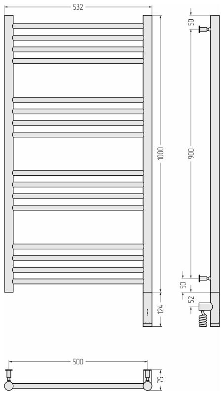 Полотенцесушитель Сунержа Богема 3.0 100x50 электрический МЭМ, прямая, правый, хром. Все характеристики |