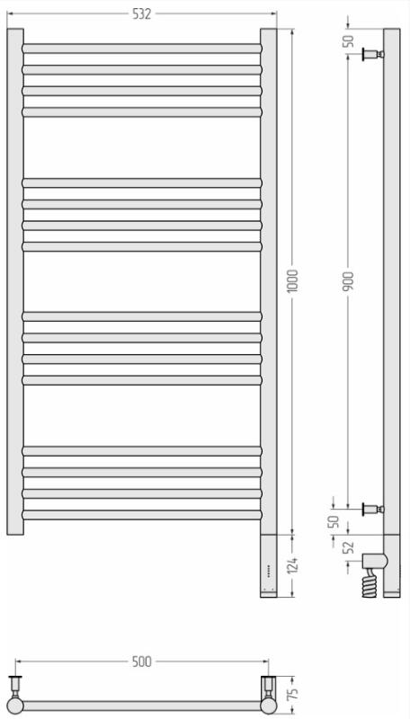 Полотенцесушитель Сунержа Богема 3.0 100x50 электрический МЭМ, прямая, правый, состаренная латунь. Все характеристики |