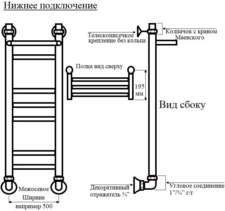 Полотенцесушитель Маргроид Вид 9/10 с полкой 80x50 водяной, нижнее. Все характеристики |