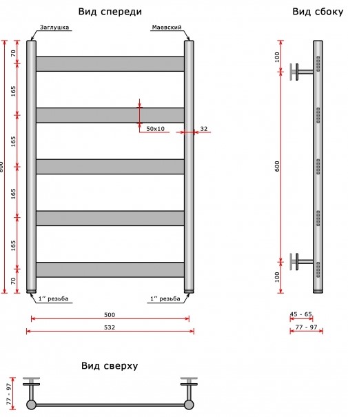 Полотенцесушитель Ростела Престиж 50x80 водяной, нижнее, черный матовый. Все характеристики |