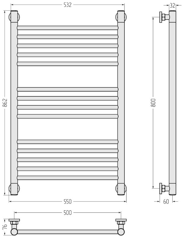 Полотенцесушитель Сунержа Богема плюс 80x50, водяной, прямая, подключается к системе горячего водоснабжения или центрального отопления последовательно к основной магистрали. Перемычка "Прямая". Площадь помещения 5 м². Объем помещения 12.5 м³. Теплоотдача 497 Qвт. Рабочее давление от 3 до 15 атм. Давление испытаний 60 атм. Температура теплоносителя до 105°С. Масса 7.60 кг. Объем 0.021 м³. Изображение и цвет на мониторе могут отличаться от оригинала. Комплектность: