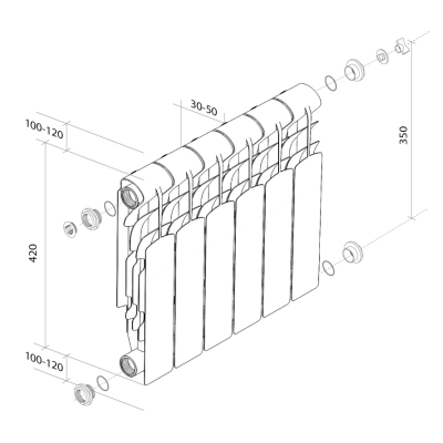 В комплекте: 4 ребра.Дополнительно комплектуется: набор для подключения 1/2" RT02 или 3/4" RT03, набор вентилей 1/2" RTO 50.011 угловой или RTO 50.009 прямой, набор креплений RT06-02. Для подключения термостатической головки необходимо собрать комплект из: вентиль термостатический 1/2" RTE 50.011 угловой или RTE 50.013 прямой + термоголовка жидкостная 1/2" RTE 50.030 + вентиль на обратную подводку 1/2" RTO 50.005 угловой или RTO 50.007 прямой. |