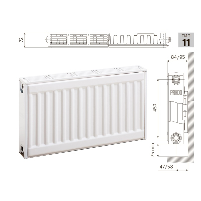 Радиатор Prado Classic Type 21 120x50 сталь, бок. из стали.Свойства. Панельные радиаторы с конвекционными элементами для систем отопления жилых, общественных и промышленных зданий. Сталь очень быстро нагревается и мгновенно нагревает пространство вокруг себя. Цвет-белый RAL 9016. Боковые поверхности закрыты защитными элементами, верхняя поверхность закрыта планкой типа "гриль". Четыре боковые подсоединительные отверстия в каждом углу радиатора с внутренней резьбой G1/2. Средняя теплоотдача при температуре входящей горячей воды 50 градусов-1376 Вт, 70 градусов-2117 Вт. Радиатор Classic Type 21 120x50 см с двумя рядами панелей по глубине, с одним рядом оребрения, приваренного к тыльной стороне передней панели, с воздуховыпускной решёткой и боковыми стенками. Производство. ООО «Прадо» (г.Ижевск) с 2005 года выпускает панельные стальные радиаторы. В производстве используется современное автоматизированное оборудование. Панельные радиаторы "Прадо" поставляются во многие регионы России, в Беларусь и другие страны СНГ. Качество. Радиаторы Prado полностью соответствуют ГОСТ 31311 «Приборы отопительные. Общие технические условия». В производстве используются и постоянно внедряются самые современные технологии и материалы, средства автоматизации и контроля. Гарантия. Продолжительная гарантия - 10 лет. Изображение и цвет на мониторе могут отличаться от оригинала. Комплектность:
