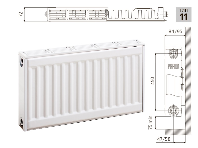 Радиатор Prado Classic Type 21 260x50 сталь, бок. из стали.Свойства. Панельные радиаторы с конвекционными элементами для систем отопления жилых, общественных и промышленных зданий. Сталь очень быстро нагревается и мгновенно нагревает пространство вокруг себя. Цвет-белый RAL 9016. Боковые поверхности закрыты защитными элементами, верхняя поверхность закрыта планкой типа "гриль". Четыре боковые подсоединительные отверстия в каждом углу радиатора с внутренней резьбой G1/2. Средняя теплоотдача при температуре входящей горячей воды 50 градусов-3002 Вт, 70 градусов-4618 Вт. Радиатор Classic Type 21 260x50 см с двумя рядами панелей по глубине, с одним рядом оребрения, приваренного к тыльной стороне передней панели, с воздуховыпускной решёткой и боковыми стенками. Производство. ООО «Прадо» (г.Ижевск) с 2005 года выпускает панельные стальные радиаторы. В производстве используется современное автоматизированное оборудование. Панельные радиаторы "Прадо" поставляются во многие регионы России, в Беларусь и другие страны СНГ. Качество. Радиаторы Prado полностью соответствуют ГОСТ 31311 «Приборы отопительные. Общие технические условия». В производстве используются и постоянно внедряются самые современные технологии и материалы, средства автоматизации и контроля. Гарантия. Продолжительная гарантия - 10 лет. Изображение и цвет на мониторе могут отличаться от оригинала. Комплектность: