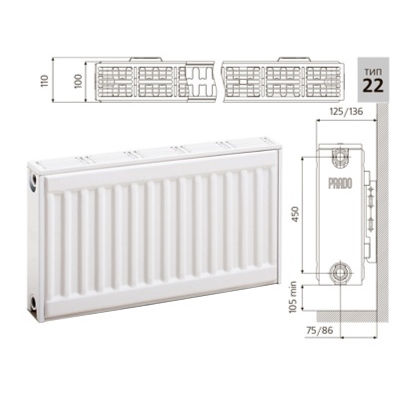 Радиатор Prado Classic Тип 22 130x50 сталь, бок.. Все характеристики |