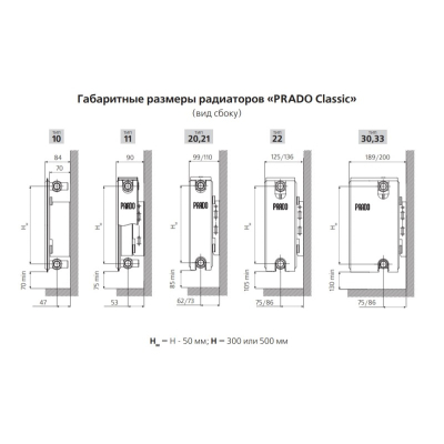 Радиатор Prado Classic Type 22 170x50 сталь, бок. из стали.Свойства. Панельные радиаторы с конвекционными элементами для систем отопления жилых, общественных и промышленных зданий. Сталь очень быстро нагревается и мгновенно нагревает пространство вокруг себя. Цвет-белый RAL 9016. Боковые поверхности закрыты защитными элементами, верхняя поверхность закрыта планкой типа "гриль". Четыре боковые подсоединительные отверстия в каждом углу радиатора с внутренней резьбой G1/2. Средняя теплоотдача при температуре входящей горячей воды 50 градусов-2427 Вт, 70 градусов-3734 Вт. Радиатор Classic Type 22 170x50 см с двумя рядами панелей по глубине, с двумя рядами оребрения, приваренными к каждой панели с внутренней стороны, с воздуховыпускной решёткой и боковыми стенками. Производство. ООО «Прадо» (г.Ижевск) с 2005 года выпускает панельные стальные радиаторы. В производстве используется современное автоматизированное оборудование. Панельные радиаторы "Прадо" поставляются во многие регионы России, в Беларусь и другие страны СНГ. Качество. Радиаторы Prado полностью соответствуют ГОСТ 31311 «Приборы отопительные. Общие технические условия». В производстве используются и постоянно внедряются самые современные технологии и материалы, средства автоматизации и контроля. Гарантия. Продолжительная гарантия - 10 лет. Изображение и цвет на мониторе могут отличаться от оригинала. Комплектность: