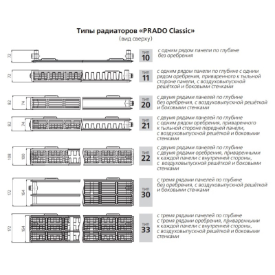 Радиатор Prado Classic Тип 33 110x50 сталь, бок.. Все характеристики |