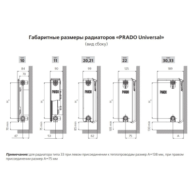 Радиатор Prado Universal Тип 11 180x30 сталь, нижн.. Все характеристики |