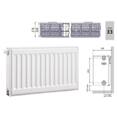Радиатор Prado Universal Type 33 100x50 сталь, нижн. из стали.Свойства. Панельные радиаторы с конвекционными элементами для систем отопления жилых, общественных и промышленных зданий. Сталь очень быстро нагревается и мгновенно нагревает пространство вокруг себя. Цвет-белый RAL 9016. Боковые поверхности закрыты защитными элементами, верхняя поверхность закрыта воздуховыпускной панелью. Подключение прибора к системе отопления осуществляется по универсальной схеме: через два нижних присоединительных отверстия, расположенных с одной стороны радиатора, или через четыре боковых присоединительных отверстия, которые расположены в углах радиатора. Термостатический клапан для автоматической регулировки температуры фирмы Danfoss (Дания). Средняя теплоотдача при температуре входящей горячей воды 50 градусов-1999 Вт, 70 градусов-3076 Вт. Радиатор Universal Type 33 100x50 см с тремя рядами панелей по глубине, с тремя рядами оребрения, приваренными к каждой панели с внутренней стороны, с воздуховыпускной решёткой и боковыми стенками. Производство. ООО «Прадо» (г.Ижевск) с 2005 года выпускает панельные стальные радиаторы. В производстве используется современное автоматизированное оборудование. Панельные радиаторы "Прадо" поставляются во многие регионы России, в Беларусь и другие страны СНГ. Качество. Радиаторы Prado полностью соответствуют ГОСТ 31311 «Приборы отопительные. Общие технические условия». В производстве используются и постоянно внедряются самые современные технологии и материалы, средства автоматизации и контроля. Гарантия. Продолжительная гарантия - 10 лет. Изображение и цвет на мониторе могут отличаться от оригинала. Комплектность: