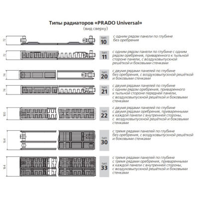 Радиатор Prado Universal Тип 33 180x30 сталь, нижн.. Все характеристики |