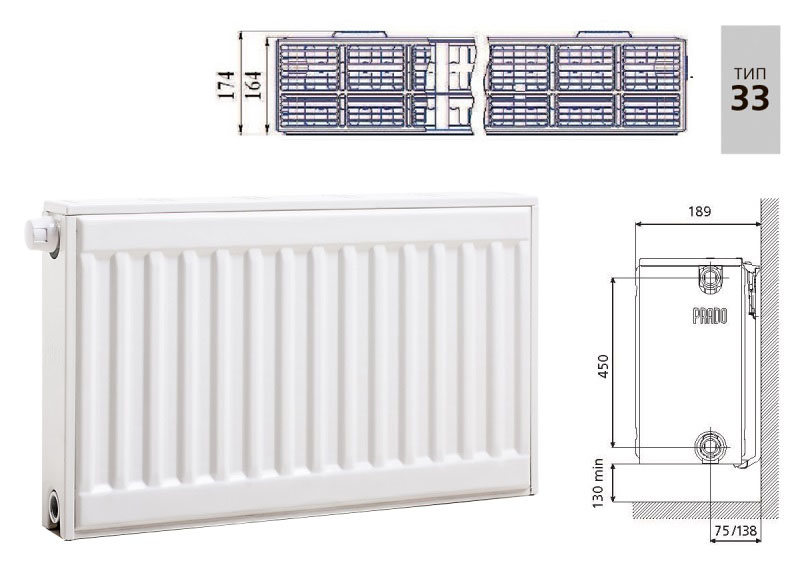 Радиатор Prado Universal Тип 33 260x50 сталь, нижн.. Все характеристики |