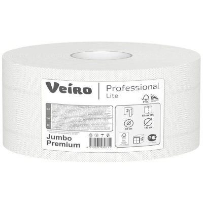 Туалетная бумага Veiro Professional Lite Jumbo Premium рулон, белый, 2 слоя, 150 м. Все характеристики |