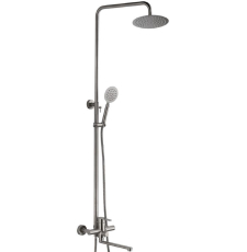 Открытый тропический душ для душевой закрепляется прямо на стену, оставляя на виду все основные элементы конструкции. Он легко монтируется, подойдет для любого дизайна, прост в ремонте и порадует наиболее бюджетной ценой. В зависимости от личных предпочтений и особенностей помещения среди такого варианта стоек можно выбрать настенные и напольные модели.