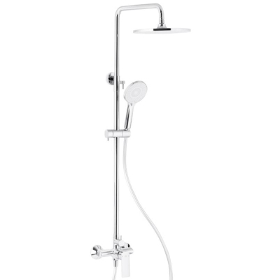В комплекте: смеситель для душа, душевая штанга, тропический душ, ручной душ, душевой шланг, держатель для ручного душа. |