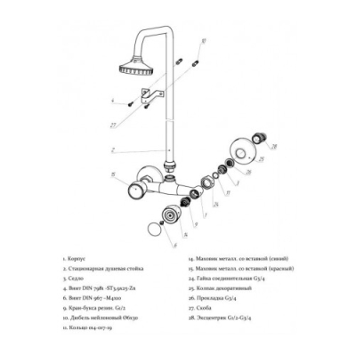 В комплекте: монтажный набор, душевая стойка, смеситель для душа. |