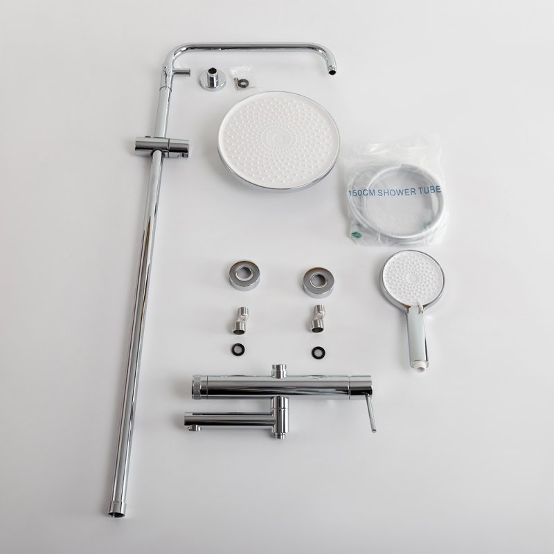 В комплекте: ручной душ, верхний душ, смеситель с поворотным изливом, аэратор, душевой шланг, металлическая штанга, держатель душевой лейки, дивертор. |