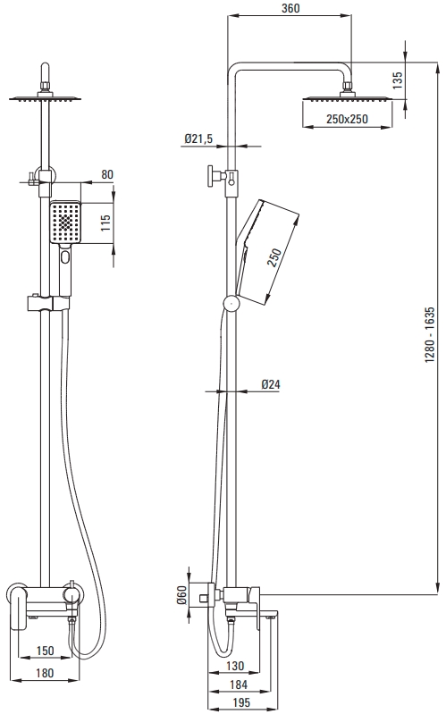 Душевая стойка Deante Alpinia Cascada Nero NAC_N1AM со смесителем, черный. Все характеристики |
