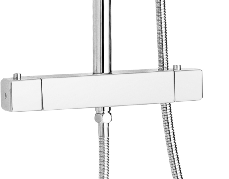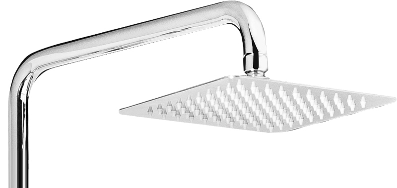 В комплекте: верхний душ, ручной душ, термостатический смеситель, душевой шланг, 5 запасных сопел. |