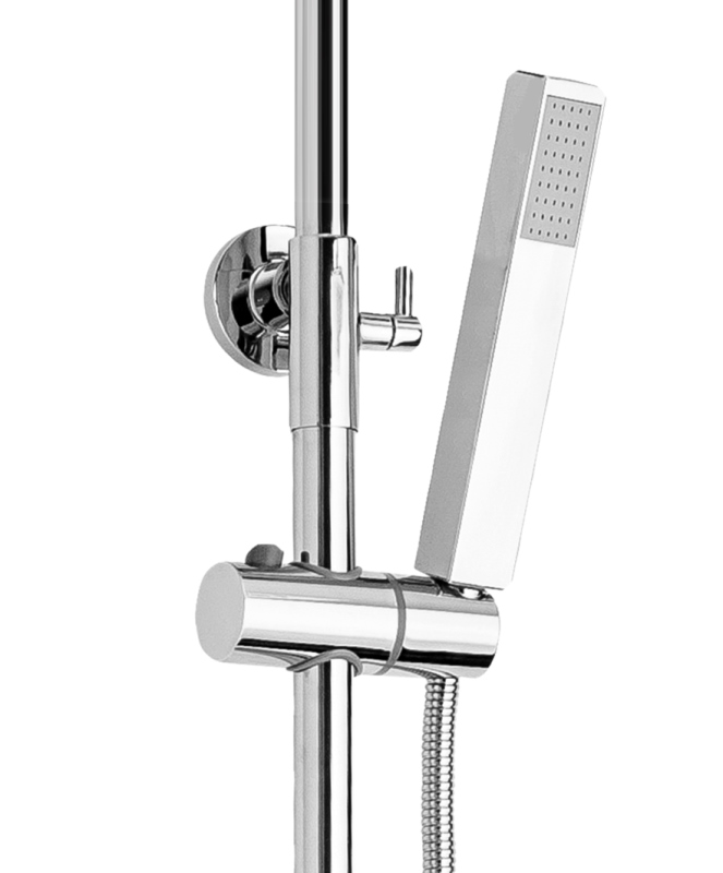 Душевая стойка Deante Cascada Begonia NAC_01BT с термостатом из качественной латуни.Свойства. Ручная 1-функциональная лейка с режимом "дождевая струя". Материал-хромированный пластик. Верхняя стальная лейка 20х20 см. Латунная штанга с регулируемыми наклоном и высотой лейки от 85 до 118 см. Растягивающийся шланг с двойным плетением длиной 175 см. Система anti-calc для защиты от известкового налета. Душевая стойка Cascada Begonia NAC_01BT с термостатическим смесителем. Производство. Польская компания Deante более 30 лет выпускает сантехнику для ванных и душевых комнат и кухонь. Высокотехнологичное современное оборудование. Инновационные прогрессивные подходы к производству. Качество. Высокий уровень стандартов производства и контроля. Лучшие материалы и компоненты. Изделия отвечают польским, европейским и международным стандартам и нормам. Качество 100% Польша. Дизайн. Компания сотрудничает с креативными молодыми художниками и признанными проектировщиками. Инновационная и красивая продукция, которая ежегодно получает награды во многих дизайнерских конкурсах. Изображение и цвет на мониторе могут отличаться от оригинала. Комплектность: