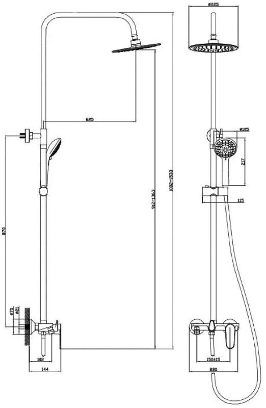 Душевая стойка Diadonna D91-335117SY со смесителем, хром. Все характеристики |