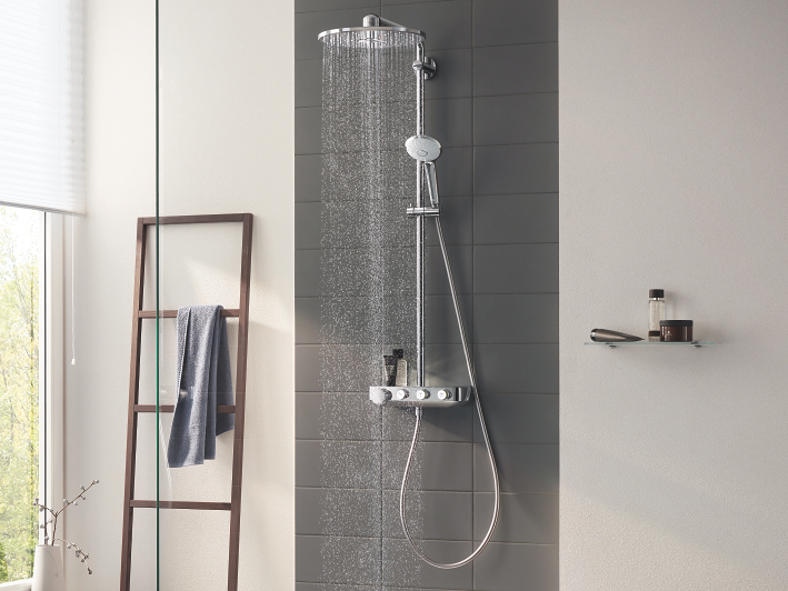 Душевая стойка Grohe Euphoria SmartControl System 310 Duo 26507LS0, с термостатом из высококачественной латуни.Свойства. Смесители Grohe достаточно массивные и тяжелые, что косвенно подчеркивает их надежность и качество исполнения. Тропическая лейка с режимами PureRain и Centered Jet. Ручная лейка с режимами Rain, SmartRain, Massage. Внутренний охлаждающий канал для продолжительного срока службы. Расход воды от 7 л/мин. Минимальное давление-1 атм. Технологии смесителя. Термостатический смеситель с душевой стойкой Euphoria SmartControl System 310 Duo 26507LS0 изготовлен с применением уникальных разработок. StarLight - яркая и блестящая хромированная поверхность, с которой легко удалять налет. Смеситель остается ослепительным и выглядит как новый весь срок службы. EcoJoy - снижение расхода воды без ущерба для комфортного потока воды. TurboStat - встроенный термоэлемент. SafeStop - стопор безопасности при 38°C. SafeStop Plus - ограничитель температуры на 43°C. SmartControl - нажать для вкл/выкл, повернуть для увеличения напора воды от режима EcoJoy до максимального напора воды. CoolTouch - защита от ожога о корпус смесителя. ProGrip - эргономичные рукоятки с рифленой поверхностью. EasyReach - встроенная полочка. Технологии душевого набора. SpeedClean - ручная лейка с системой легкой очистки против известковых отложений. DreamSpray - равномерный и приятный душевой поток. SprayDimmer - экономия воды до 40% с сохранением душевого потока. Twistfree - система против перекручивания шланга. AntiFold - защита шланга от залома. QuickFix - система легкой и быстрой установки. Регулируемое расстояние между настенными креплениями штанги позволяет использовать для монтажа уже имеющиеся отверстия в стене. Монтаж. Все термостаты имеют стандартную схему подключения: слева подключается горячая вода, а справа – холодная. Подходит для подключения к проточному водонагревателю с мощностью потребления только выше 18 кВ/ч или к накопительному любого объема. Производство. Компания Grohe ведущий мировой производитель сантехники для ванной комнаты и кухни. Крупнейшие современные производственные мощности в Германии и Азии. Собственные инновационные разработки. Запатентованные технологии. Качество. Каждое изделие проходит несколько проверок на всех этапах производства. Продукция отвечает международному стандарту ISO 9001. Дизайн. Продукция получила более 350 премий в области дизайна и инноваций с 2003 г. Она объединяет современность и традиции, которые впишутся в любой интерьер. Гарантия. Продолжительная гарантия на смеситель - 5 лет. Изображение и цвет на мониторе могут отличаться от оригинала. Комплектность: