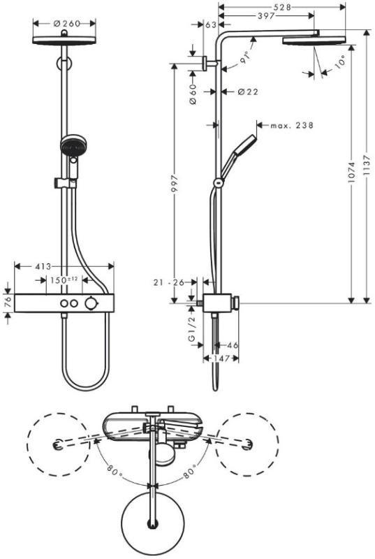 Душевая стойка Hansgrohe Pulsify Showerpipe 260 1 Jet 24220000 с термостатом, хром. Все характеристики |