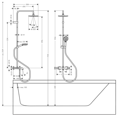 Душевая стойка Hansgrohe Vernis Blend 200 1jet Showerpipe 26274000 с термостатом для ванны, хром из качественной латуни.Свойства. Покрытие хром. 1 вид струи верхнего душа-Rain. 2 вида струи ручного душа-Rain, IntenseRain. Максимальный расход воды при 3 бар-20 л/мин. Регулируемый угол верхнего душа шарнирным соединением. Держатель для ручного душа регулируется по высоте с внешней кнопкой выбора. Предохранительный ограничитель при 40°C. Регулируемый ограничитель температуры горячей воды. Пользовательское управление посредством вращения рукоятки. Соединительная резьба G ½. QuickClean - струйные форсунки душей укомплектованы эластичными силиконовыми вставками, что позволяет легко избавиться от налета. XXL Performance - вода равномерно распределяется по большому душевому диску. Производство. Компания Hansgrohe является одним из крупнейших в мире поставщиков насадок для душа, ручного душа и смесителей. Hansgrohe производит свою продукцию на заводах в США, Германии, Франции и Китае. Собственные инновационные разработки. Запатентованные технологии. Качество. Качество от Hansgrohe – это качество продукции, сборки, дизайна и услуг. Подтверждено сертификатами: качества ISO 9001:2008 и охраны окружающей среды ISO 14001:2004. Дизайн. Компания Hansgrohe более 30 лет сотрудничает с дизайнерской студией Phoenix Design. На сегодняшний день завоевано более 600 наград в 50 международных конкурсах дизайна. Гарантия. Продолжительная гарантия на термостат - 5 лет. Изображение и цвет на мониторе могут отличаться от оригинала. Комплектность: