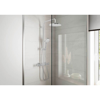 В комплекте: верхний душ, ручной душ, термостат для душа Vernis, штанга для душа, держатель для душа. |