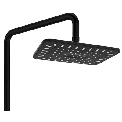 В комплекте: термостат с изливом латунь, душевая штанга, верхний душ, ручной душ, душевой шланг 150 см, держатель ручного душа. |