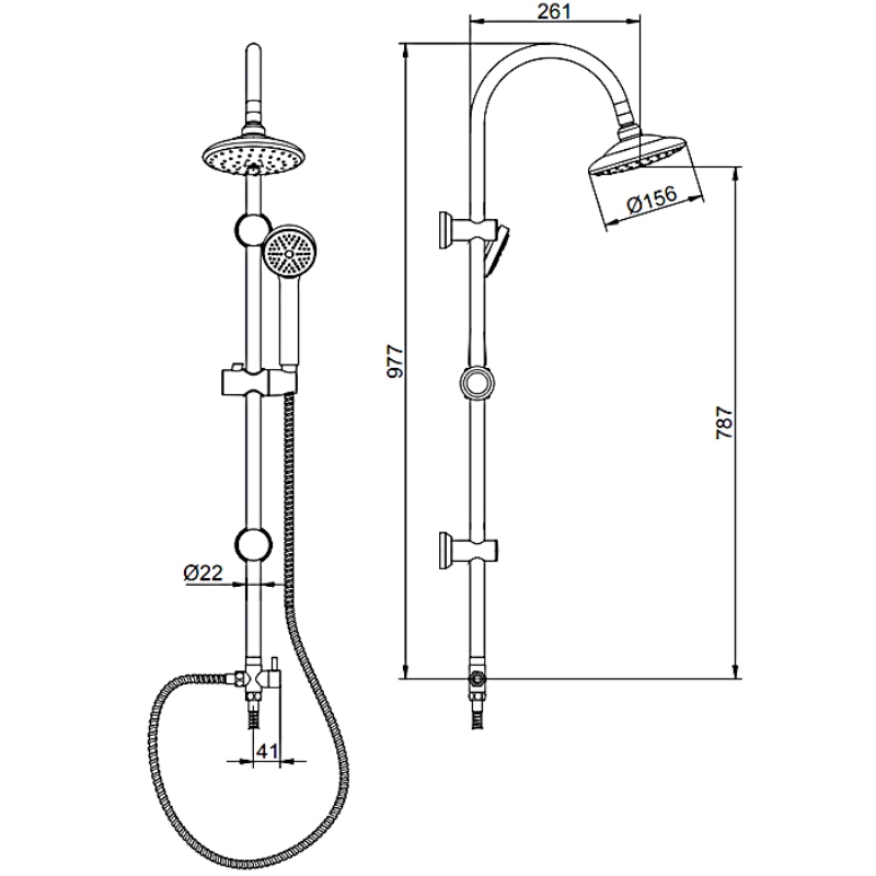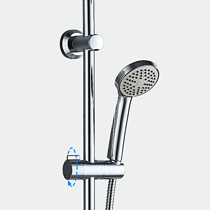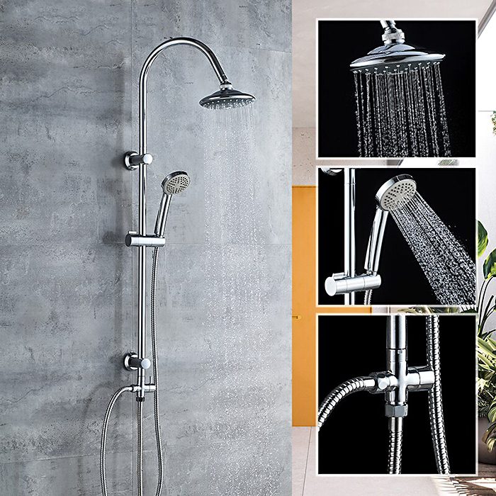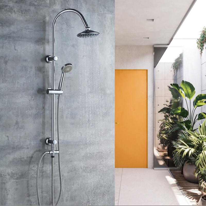 В комплекте: душевая штанга, верхний душ, кронштейн для верхнего душа, ручной душ, душевой шланг, держатель для ручного душа. |