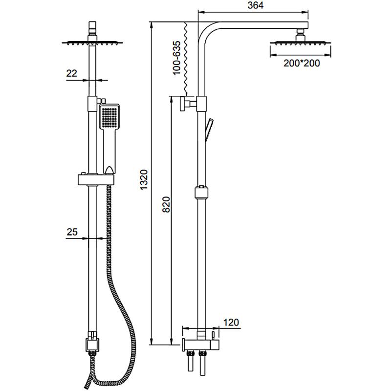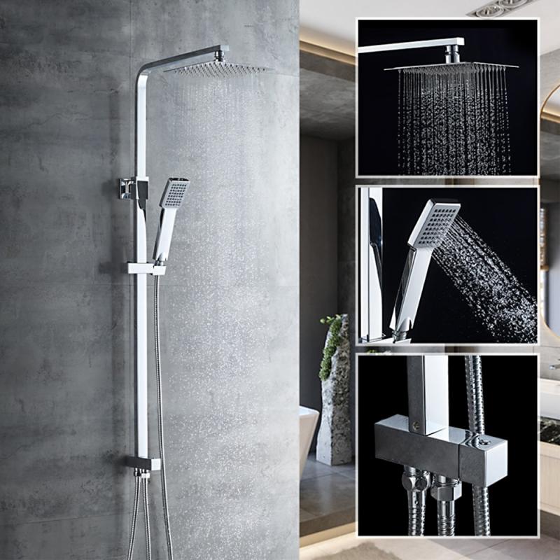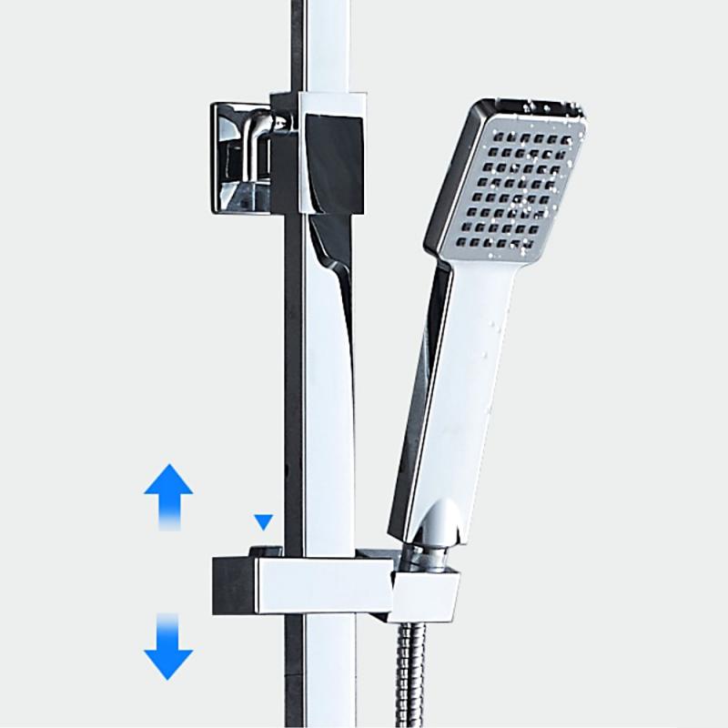 В комплекте: душевая штанга, верхний душ, кронштейн для верхнего душа, ручной душ, душевой шланг, держатель для ручного душа. |