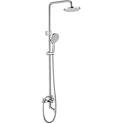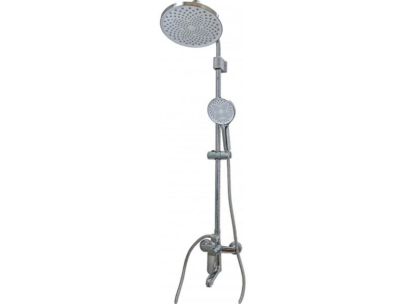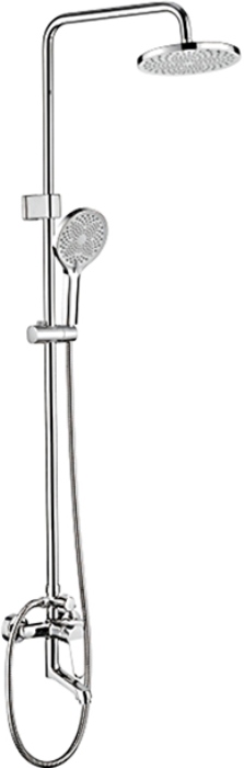 В комплекте: смеситель, душевая штанга, верхний душ, кронштейн для верхнего душа, ручной душ, душевой шланг, держатель для ручного душа. |
