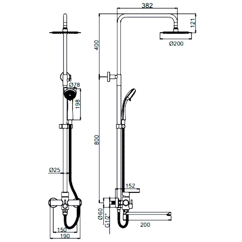 В комплекте: душевая штанга, верхний душ, кронштейн для верхнего душа, ручной душ, душевые шланги, держатель для ручного душа. |