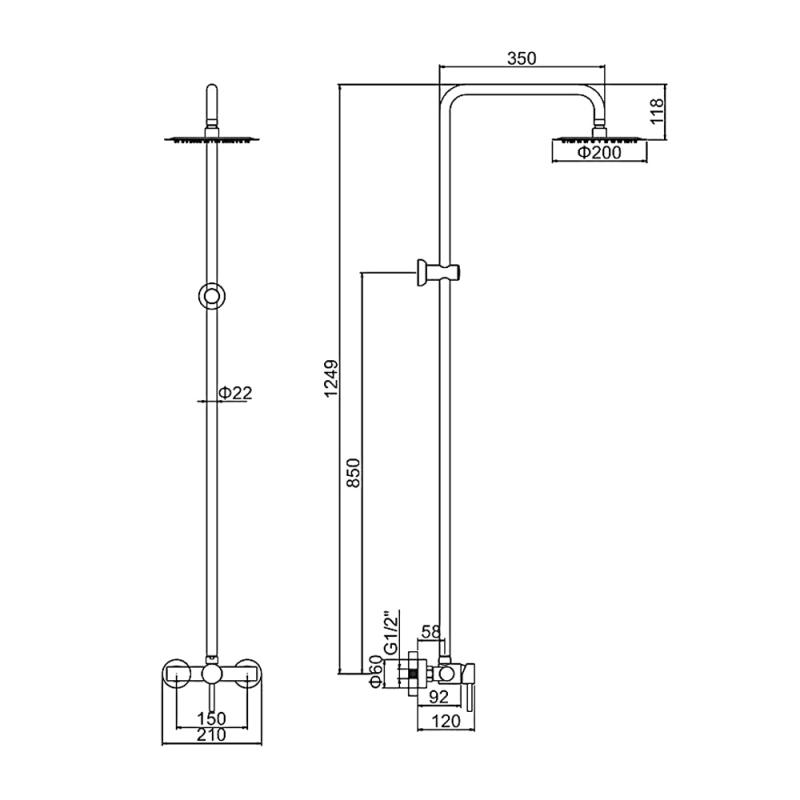 В комплекте: смеситель, верхний душ, кронштейн. |