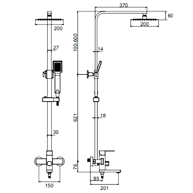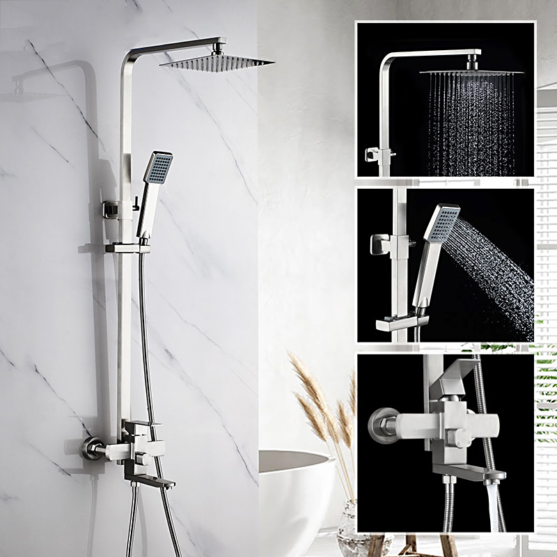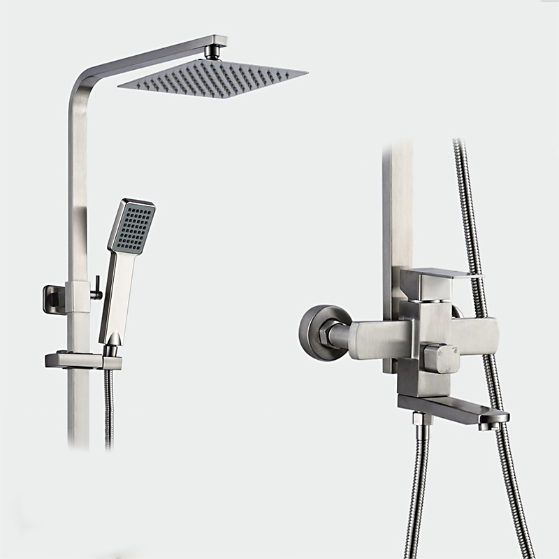 В комплекте: душевая штанга, верхний душ, кронштейн для верхнего душа, ручной душ, душевые шланги, держатель для ручного душа. |