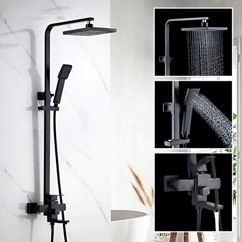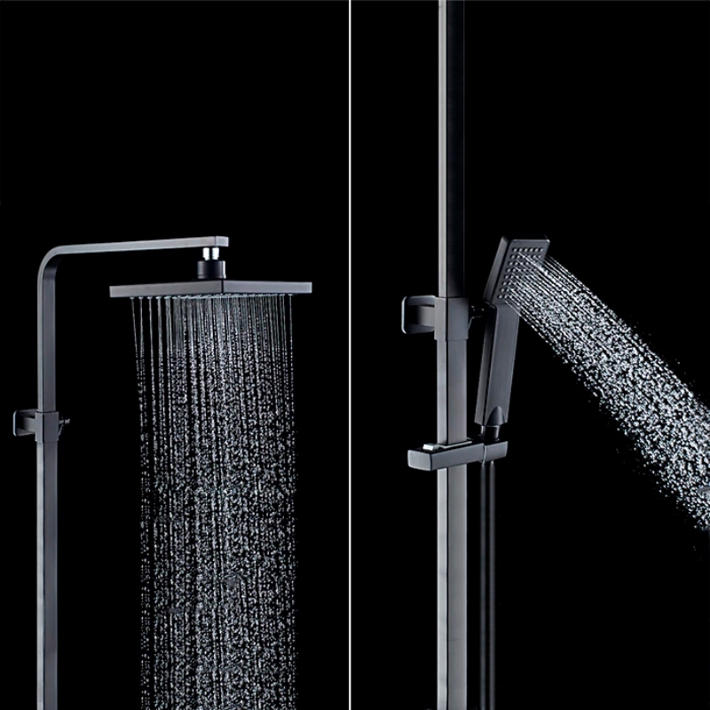 В комплекте: душевая штанга, верхний душ, кронштейн для верхнего душа, ручной душ, душевые шланги, держатель для ручного душа. |