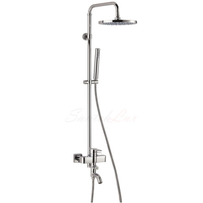 Высота: 120-200 cмГлубина: 50,0 cм Ширина: 24,5 cм Материал душевой штанги: латунь Размер верхнего душа: 20*20 см Материал верхнего душа: ABS-пластик Режим верхнего душа: тропический ливень Длина гибкого шланга: 175 см Комплектность: