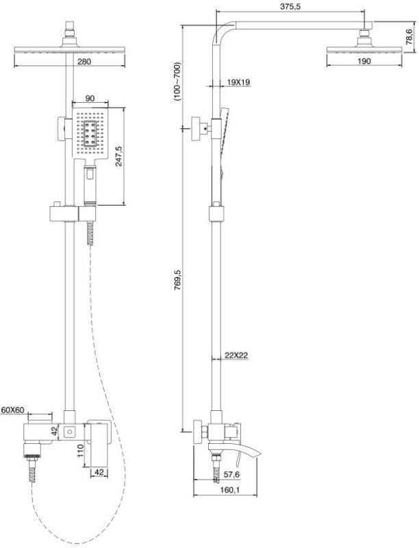 Душевая стойка Vivi Felice 1060 Cromo со смесителем, хром. Все характеристики |