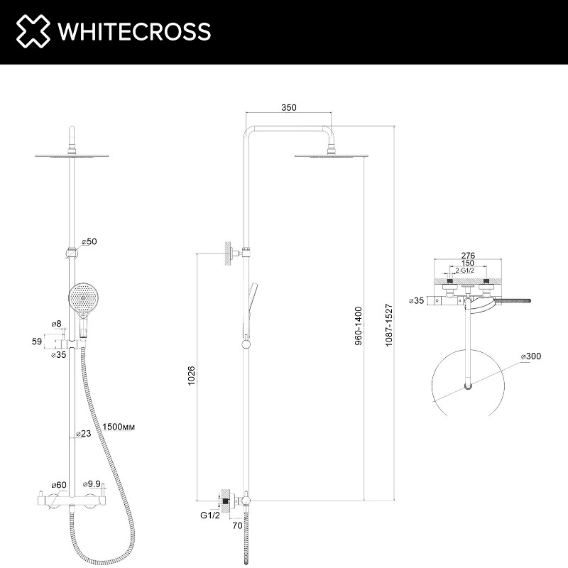 Душевая стойка Whitecross Y Y1244TOPGM со смесителем, оружейная сталь. Все характеристики |