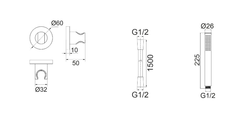 В комплекте: душевая лейка, держатель для лейки, душевой шланг. |