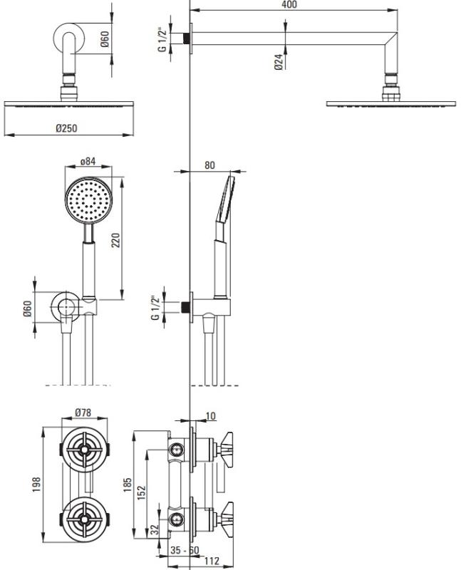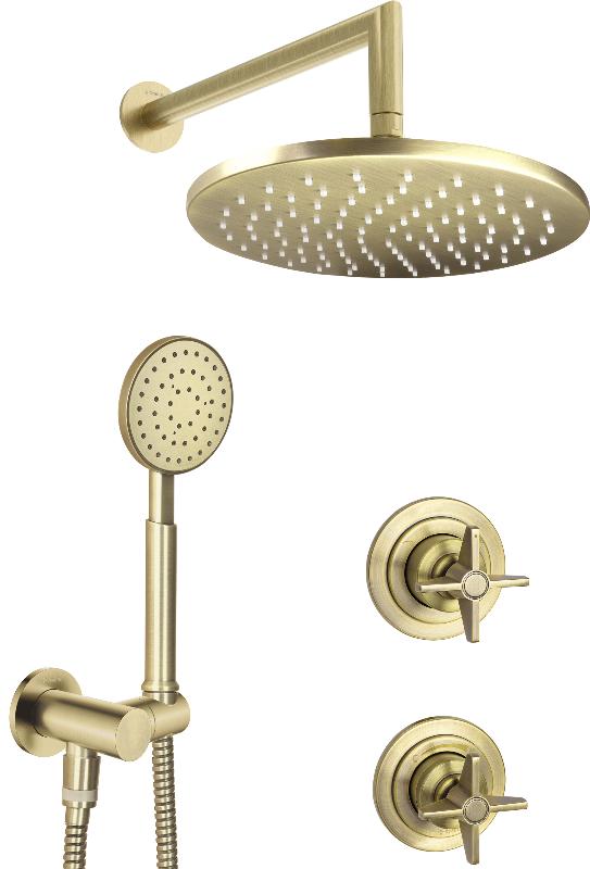 В комплекте: смеситель для душа латунь, тропический душ 1 режим латунь Anti-calc, кронштейн для тропического душа латунь, ручной душ 1 режим Anti-calc, душевой шланг 150 см двойная оплетка нержавеющая сталь anti_twist, держатель для ручной лейки с подключением. |