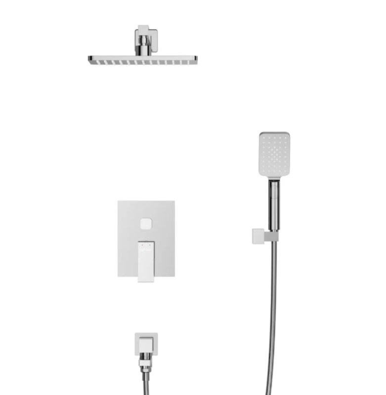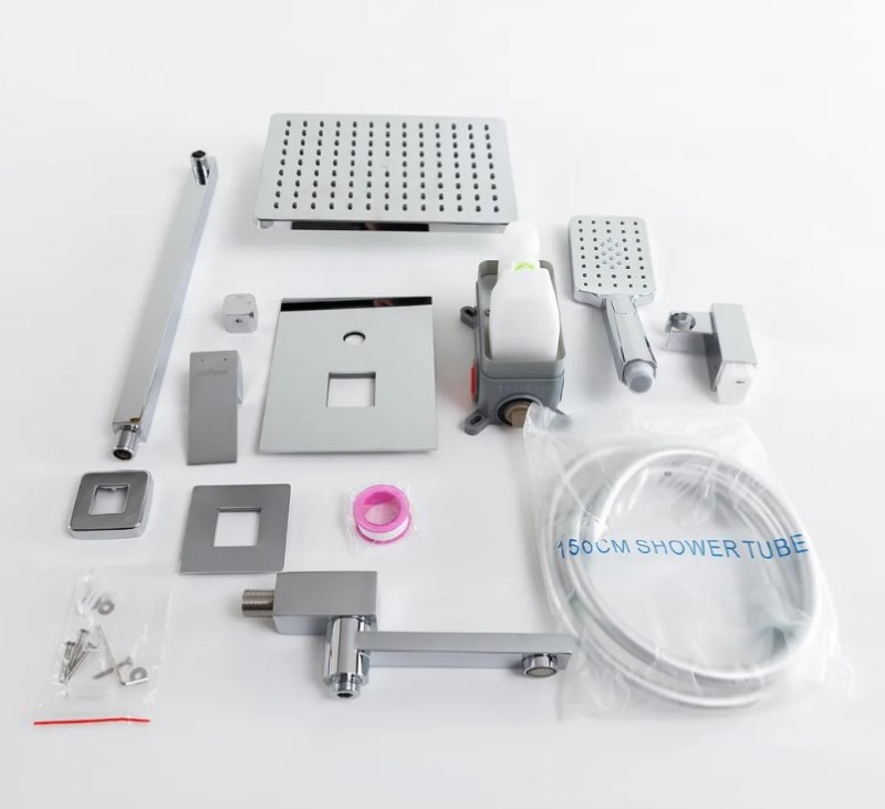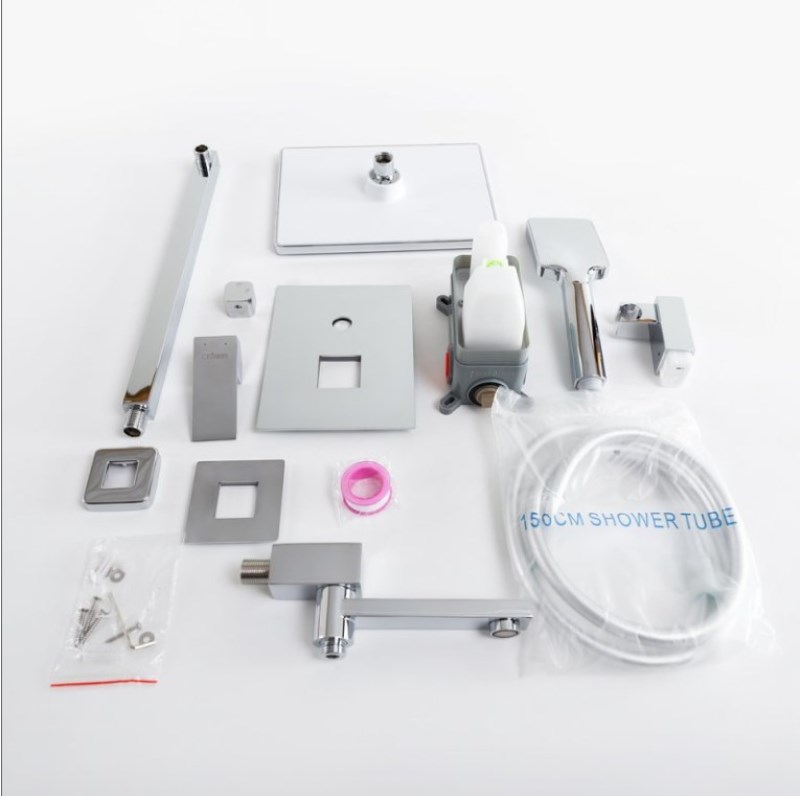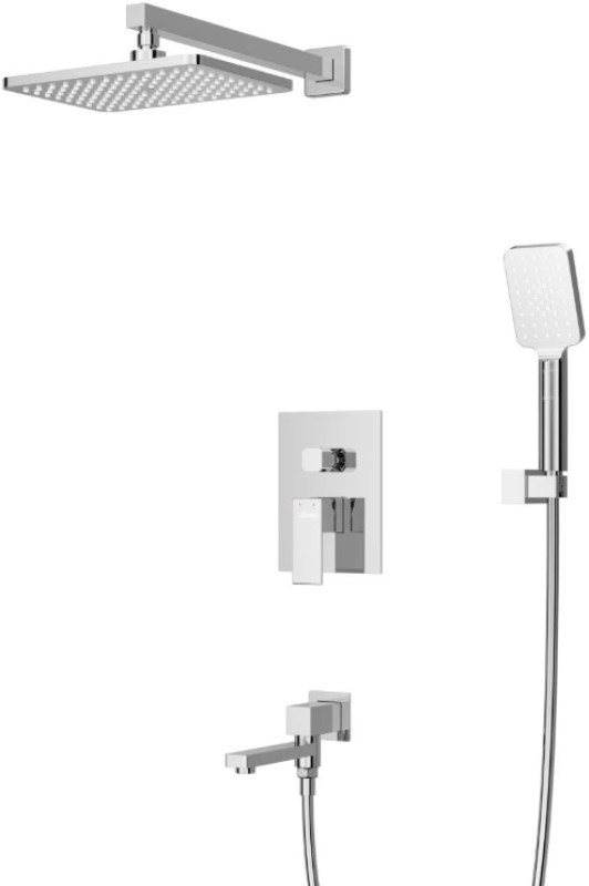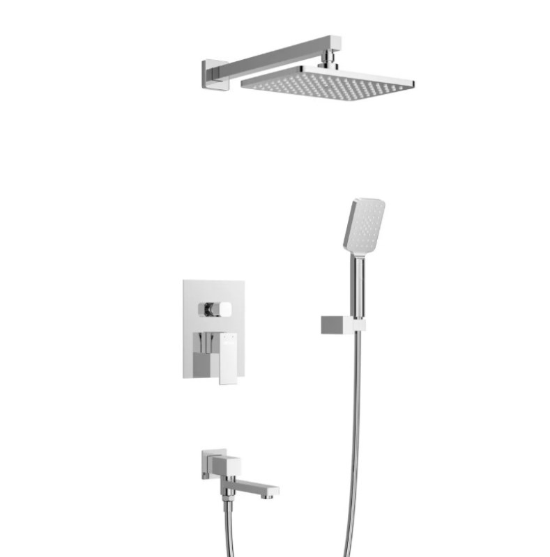 В комплекте: встраиваемый смеситель с переключателем на три выхода, поворотный излив для ванны, тропический душ, кронштейн для тропического душа, ручной душ, душевой шланг, держатель для ручного душа, скрытая монтажная часть. |