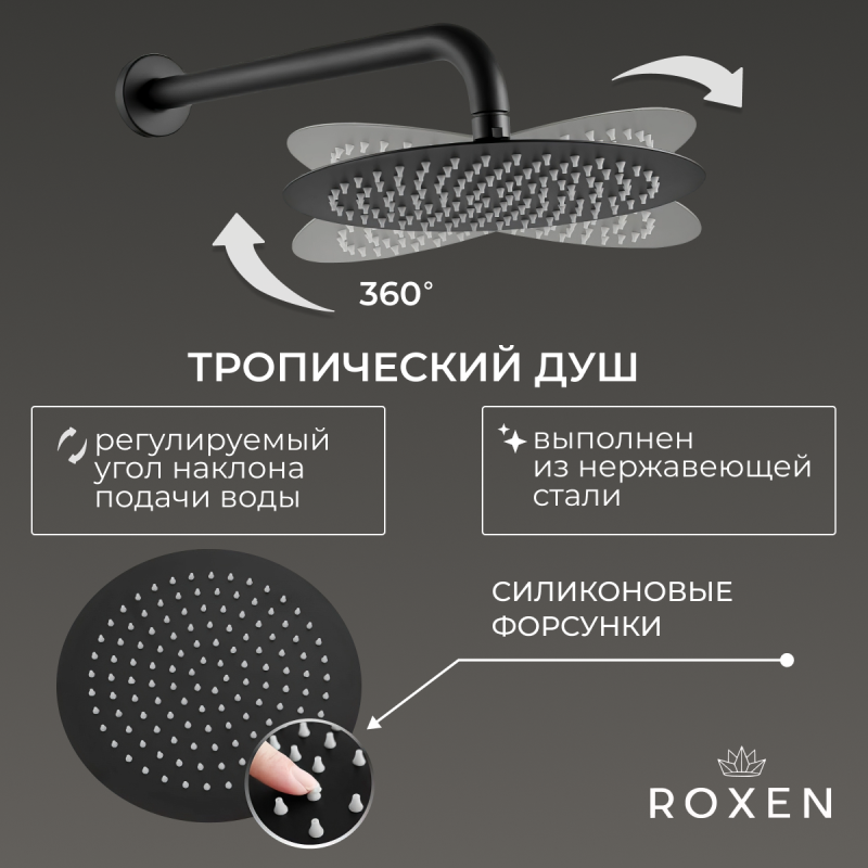 Встроенная душевая система Roxen Santi 50014000-B со смесителем, черный. Все характеристики |