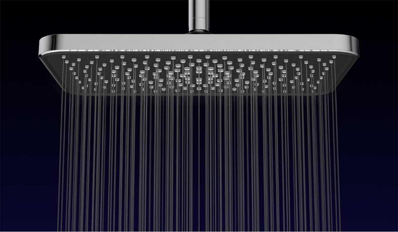 В комплекте: смеситель, тропический душ, ручной душ 3 режима, душевой шланг, держатель для ручного душа. |