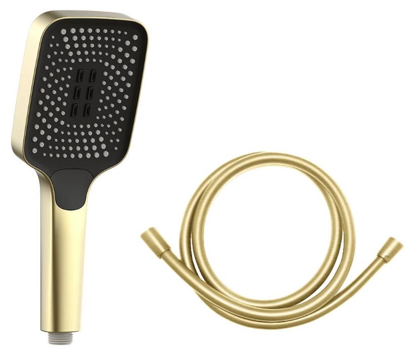 В комплекте: смеситель, тропический душ, ручной душ 3 режима, излив, душевой шланг, держатель для ручного душа. |