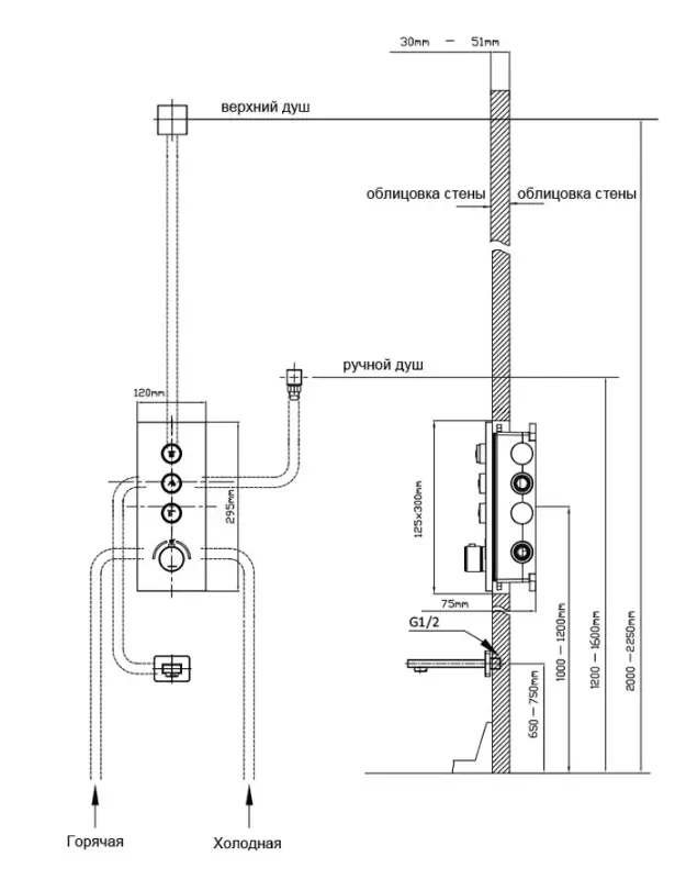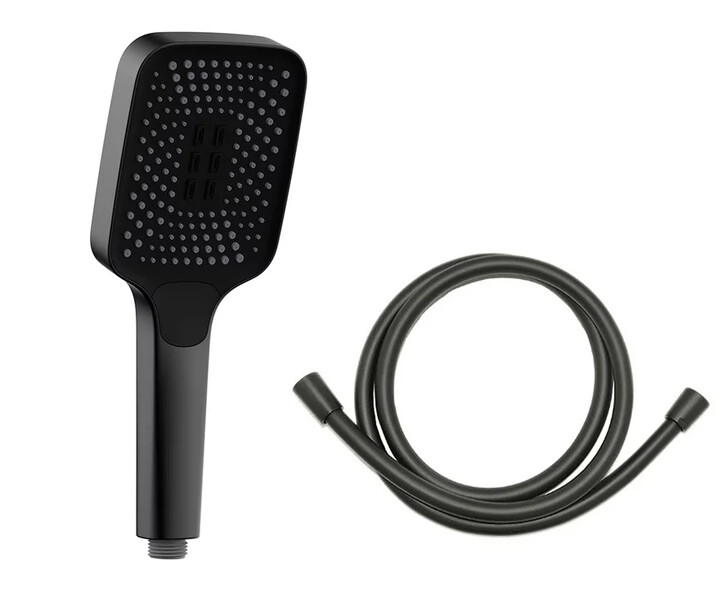 В комплекте: смеситель, тропический душ, ручной душ 3 режима, излив, душевой шланг, держатель для ручного душа. |