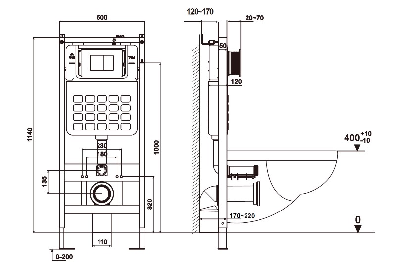 В комплекте: металлическая рама, двухрежимный смыв, цельнолитой бачок, с возможностью регулировки объема воды (малый 3-4,5 / большой 6-9 л), комплект креплений к стене.Дополнительно комплектуется: кнопка, подвесной унитаз. |